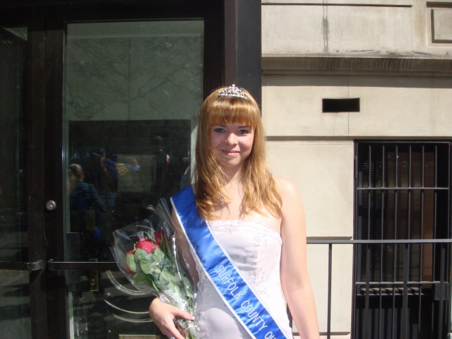 My first picture was taken as I was walking up to the parade at 5th Avenue and 64th Street (it started on 61st).  I was on 63rd and saw a young lady and her mother(?).  She was nicely set up and I had to ask for a picture.  Apparently she’s Miss Suffolk County.  A very nice person who happily posed for me.