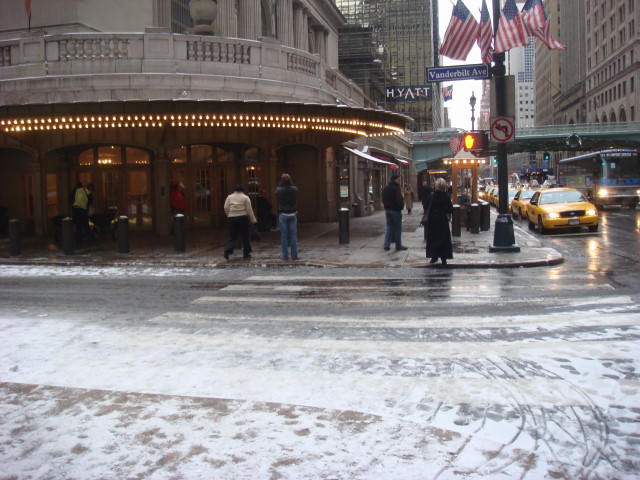 The above were taken around 9:15 am or so. I then cut over to 42nd Street and headed westward. As I was walking by Grand Central, I noticed a sight you’ll see everywhere that a surprise snow hits: a woman in sandals. Not unique to NYC as I’ve seen that sort of thing in other cities, but I always wonder about it. It wasn’t that much of a surprise.