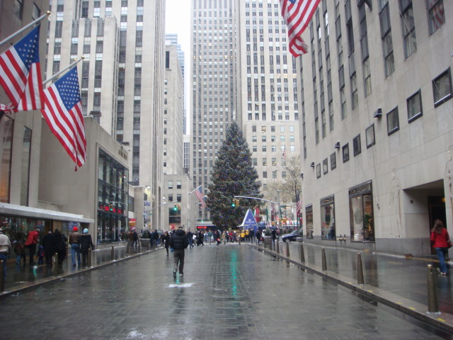 I then walked over to Rockefeller Center. I wasn’t there for the lighting, but the tree’s lit the whole season. This is a little after noon on Sunday. The pictures from the south. The open area is where the Today Show does its outdoor segments.