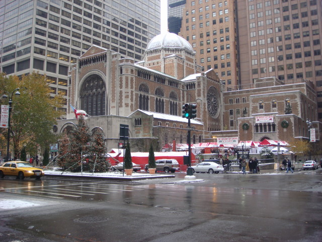 As I mentioned in my Bryant Park post, Christmas time is the time that open areas thoughout NYC become commercialized kiosks. St. Barthomew’s Episcopal Church on Park Avenue joins in the custom.