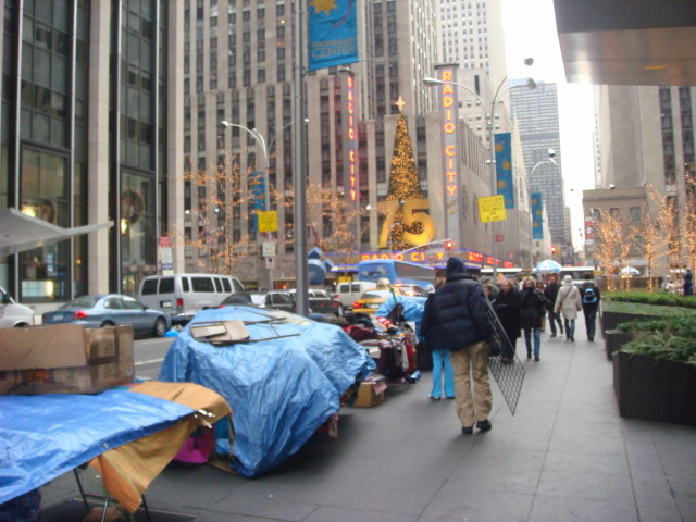 The picture was taken a little before they all finished their set-ups on a Sunday morning.  Obviously, this is near Radio City Music Hall.  These guys set up tables anywhere that people are likely to be wandering.  When you’re in this part of town, that’s everywhere.  You don’t really see them on the avenues, just on the sidestreets.
