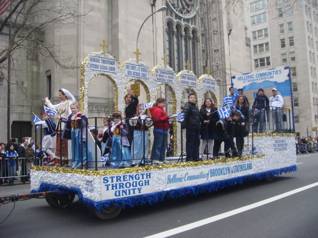 The next float was pretty generically named: the Hellenic Communities of Brooklyn and Staten Island. I guess that’s to differentiate themselves from the big Greek community is Astoria (part of Queens).