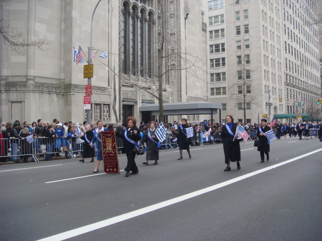 Perhaps the strangest named group of the day: Youth of Kimisis Theotokou of Brooklyn. Brooklyn? How many Youth of Kimisis Theotokou are there around? (Probably hundreds, but this was the only one of that group that I saw in the parade.)