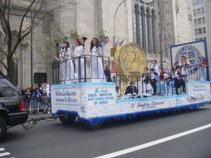 Next came a whole bunch of marchers associated with St. Demetrios. This group is from the St. Demetrios Cathedral High School of Astoria.