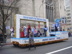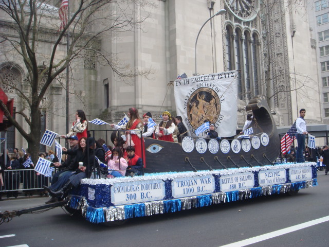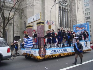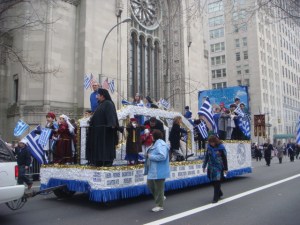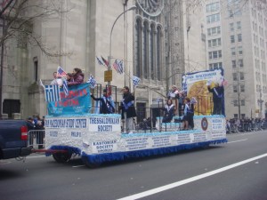 I loved this float for its politics…which I don’t have a clue to. This is the “Soccer Champions of Greece”. I didn’t see people who looked like professional soccer players, so I presume it was a youth group. They had the standard “Macedonia is Greece and only Greece” slogan. I’m aware that they have claims on it, although there is a separate country up there that calls itself Macedonia. But the sign I truly love says “Alexander the Great was Greek and Olympiakos! Never never never Scopianos.”