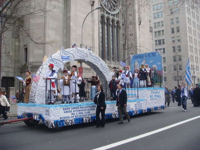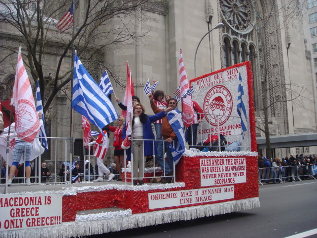 And every Greek Macedonian society group around seemed to be part of the next float, appropriately named the Pan Macedonian Society.
