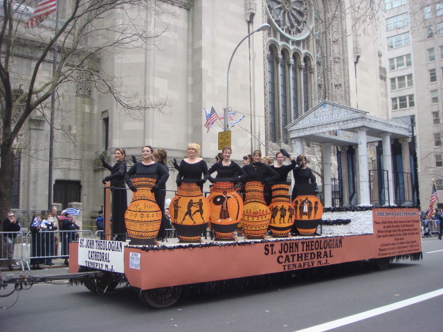 This was an interesting float. It was based on “Ode on a Grecian Urn” by John Keats. With young ladies dressed as Grecian Urns. They had a small exerpt from the poem on the side of the float. The group sponsoring it was St. John Theologian Cathedral of Tenafly, New Jersey.