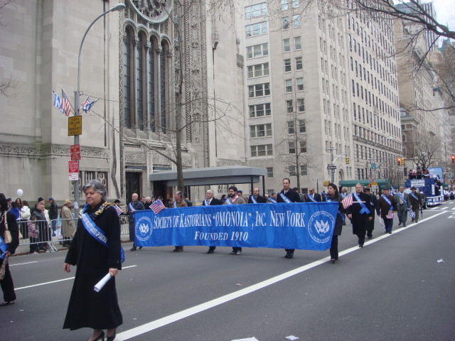 The next group was the Benevolent Society Ladies of Kastoria. I only got the last of the benevolent ladies in this picture. They were followed by the Society of Kastorians “Omonoia”. Well, Kastoria is a part of northern Greece, near Macedonia, but I’m at a loss on Omonoia.