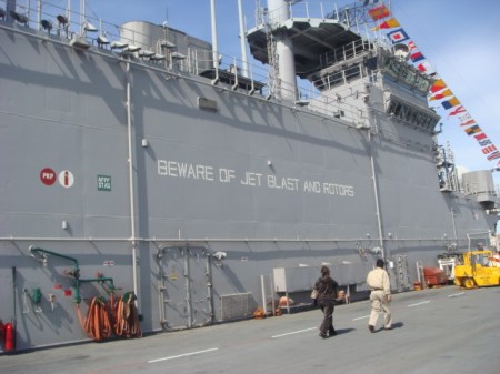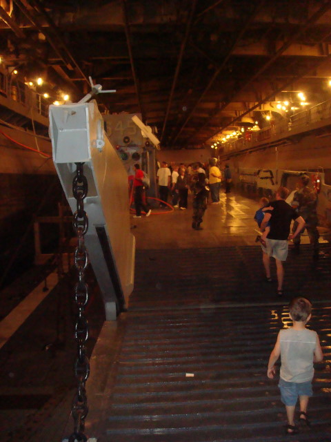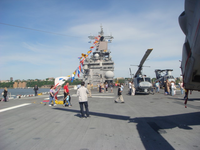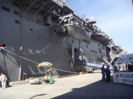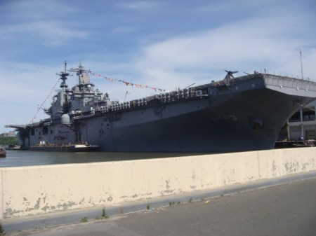 It was Fleet Week. In yesterday’s post, I talked about the outside and the inside of the USS Kearsarge, a Wasp-class amphibious assault ship, or a LHD. It took me a while to find exactly what “LHD” stands for. I found it in a GAO report that states: “Landing Helicopter Dock (LHD) ships are the Navy’s new class of amphibious assault ships to support a Marine landing force. These ships can accommodate three landing craft, AV-8B Harrier aircraft, and the full range of Navy and Marine Corps helicopters. Commissioned in 1989, the U.S.S. Wasp (LHD 1) is the lead ship of this new class of multipurpose amphibious assault ships. Between 1992 and 1998, the Navy added five more LHD ships to its fleet. LHD class ships can accommodate 104 officers; 1,004 enlisted sailors; and 1,894 Marine Corps troops.”