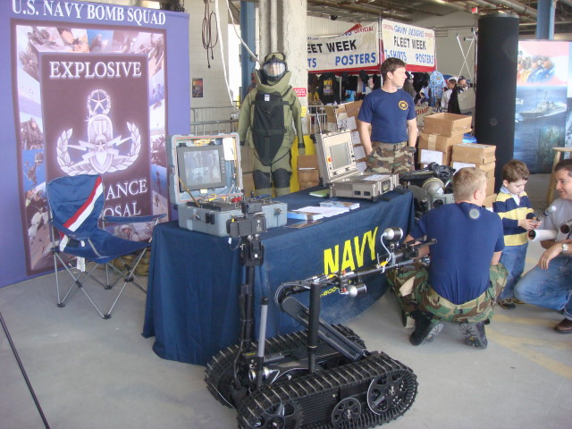 After I left the ship, I was going through to the exit and saw something that interested me. The bomb disposal display. I talked with another of the crew. They had just gotten back from Iraq and had done a lot of work finding and disposing of bombs. Nicely done, guys.