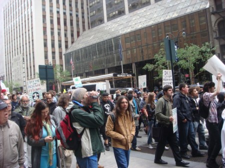 The protest was maybe 200 people? I didn’t bother to try and count. They were all in a bunch about 50 to 70 yards long, but it was a tight bunch of people. And they were followed by a lot of cops. I wondered about the cops being in such abundance, but that’s kind of typical of NYC protests. They like to have numbers on their side.