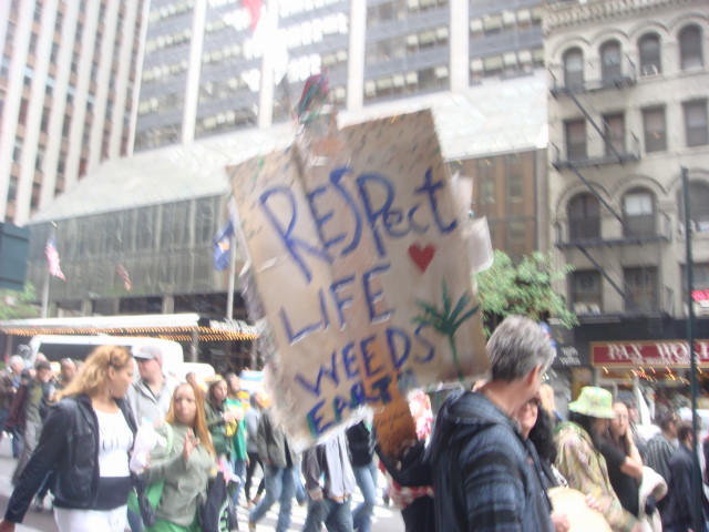 I loved this last sign. “Respect Life Weeds Earth”. It’s a bit incoherent and logically very…illogical. I presume that the wielder is trying to point out that marijuana (“weed” in 1960s/70s parlance – good to know the slang of my childhood continues) is a natural substance and is thus good. I don’t know how that jump is made, but it is by lots of people.
