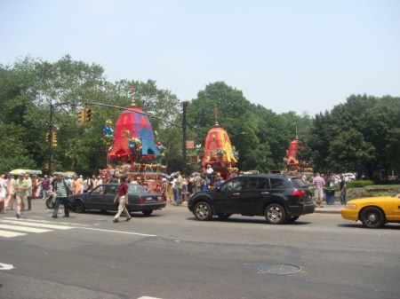 That would make it a three mile route. New York may be one of the last places in the USA with an active Hare Krishna population, but it sure couldn’t support a three mile long parade. On Fifth Avenue, too. Fifth Avenue gets most of the biggest parades.