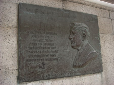 You may know that I’m a sucker for historical plaques and monuments and the like. No difference here. I’ve probably walked by it a million times and I remember seeing it at points but it never really registered. After all, Wendell Willkie isn’t a name that one hears too often nowadays.