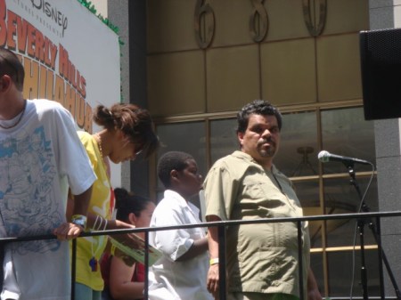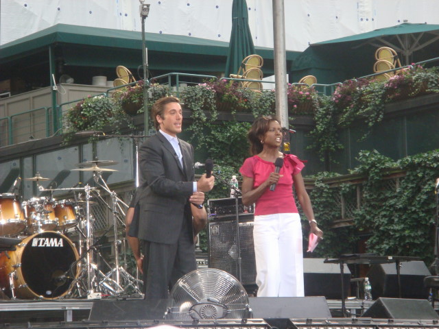 And then the GMA hosts came out. Here they are talking into their microphones. Not to the crowd, mind you. Their mics were geared to talking on the TV, not to the loudspeakers.