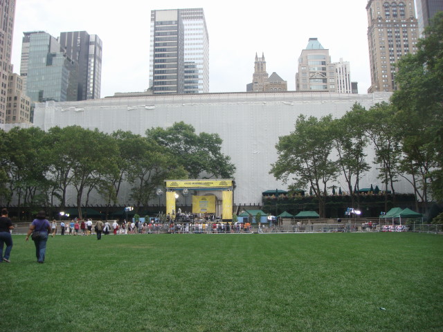 There was a free concert Friday morning. This was part of a series of concerts at Bryant Park featuring such music as Counting Crows, Usher, Cyndi Lauper, Boyz to Men, and a couple of others.