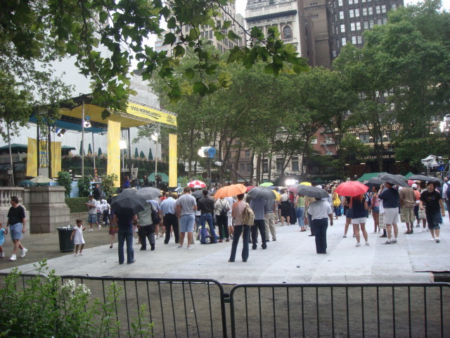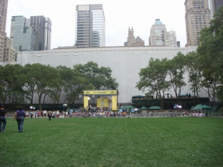 It was in Bryant Park. The notice said from 7am to 9am. I instinctively knew it wouldn’t be a two hour concert. My instincts failed me in that it was really about a 9 minute concert. I got there at just about 7am and saw that it wasn’t that crowded.