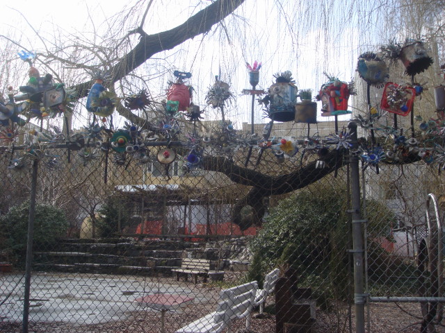 I was recently back in Alphabet City in the Lower East Side (AKA, the East Village), and ran into another of the small parks that have sprung up in the area.  These are associated with NYC’s Green Thumb program.  But just being a park ain’t enough to make me take a picture of it; instead, I need something a hair different in some way.