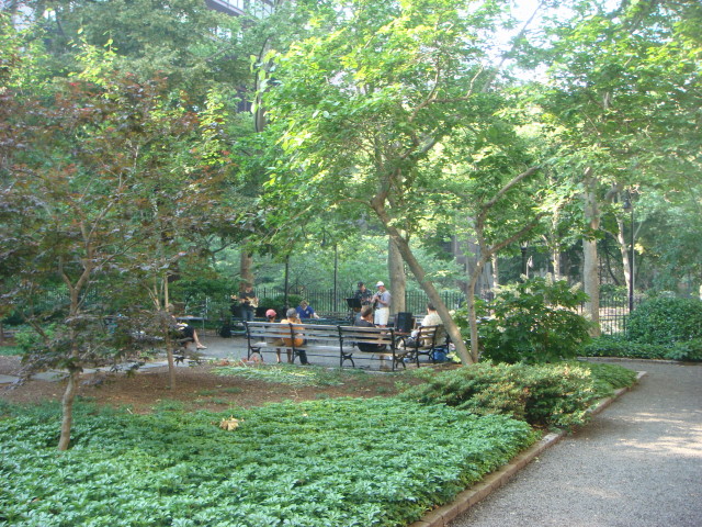 These are still pictures of the South park part of the Greens. There was a small band playing in the park recently. These aren’t street musicians, but a group contracted by Tudor City to come and play for the residents (and whoever else happened to be there).