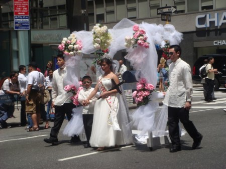 The Filipino Pastoral Ministry from Our Lady of Pompei Church in NYC. It’s kinda cool to have the Philippines, Italian, and American all cited in that title. The item the ladies are holding seem to be a doll of some sort. I presume its a Virgin Mary icon, but I just don’t know.