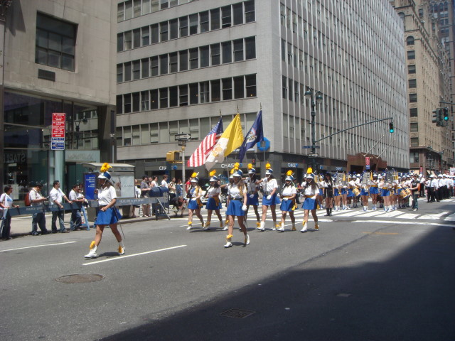 The next, and last picture of this post, is one of my favorite groups in all of NYC parades. Ladies and Gentlemen, allow me to present the hardest working ladies in NYC parading: the Mother Cabrini Marching Band. These girls are in so many parades it makes me goggle. From now until Fall, they’ll march practically every weekend. I hope they all get full scholarships to the best schools around. They sure work hard enough for it.