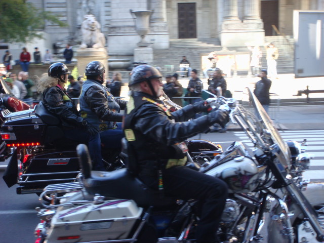The first set of marchers is usually cops on horses. Not this time. The first harbingers of the march were motorcyclists. Lots of them. And, actually, the first of three sets.